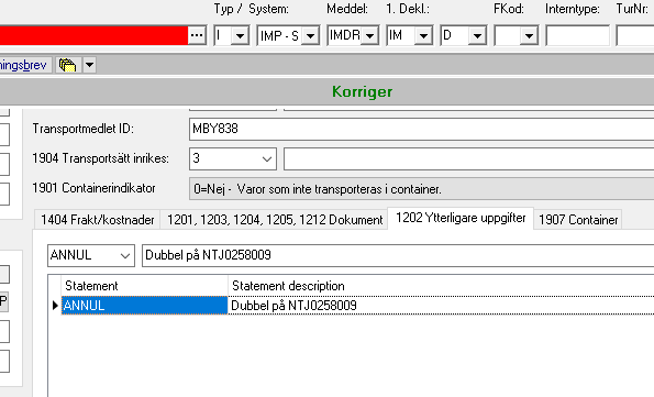 Markera uppdraget i tulltabellen och välj "Korrigera". Svara ja på om du vill upprätta en IMDR
